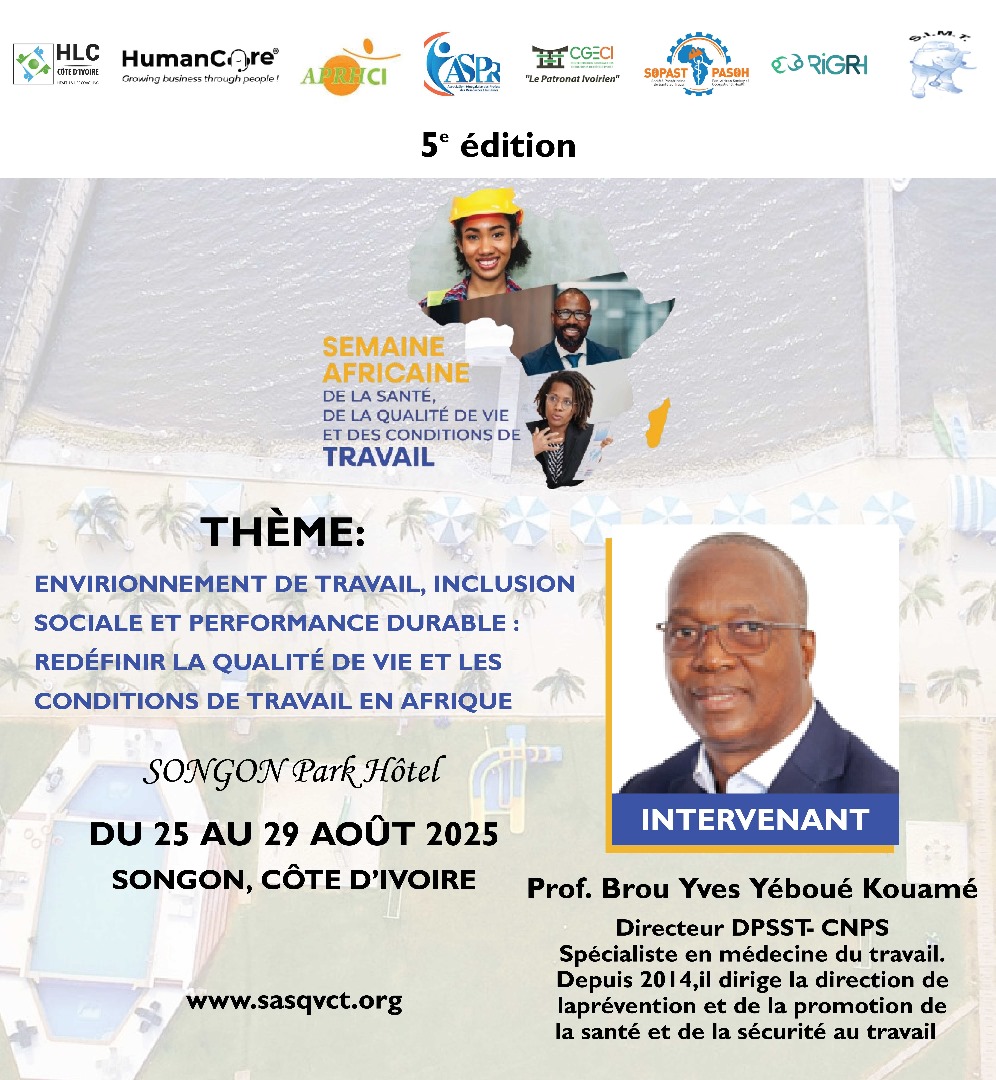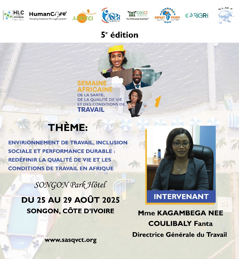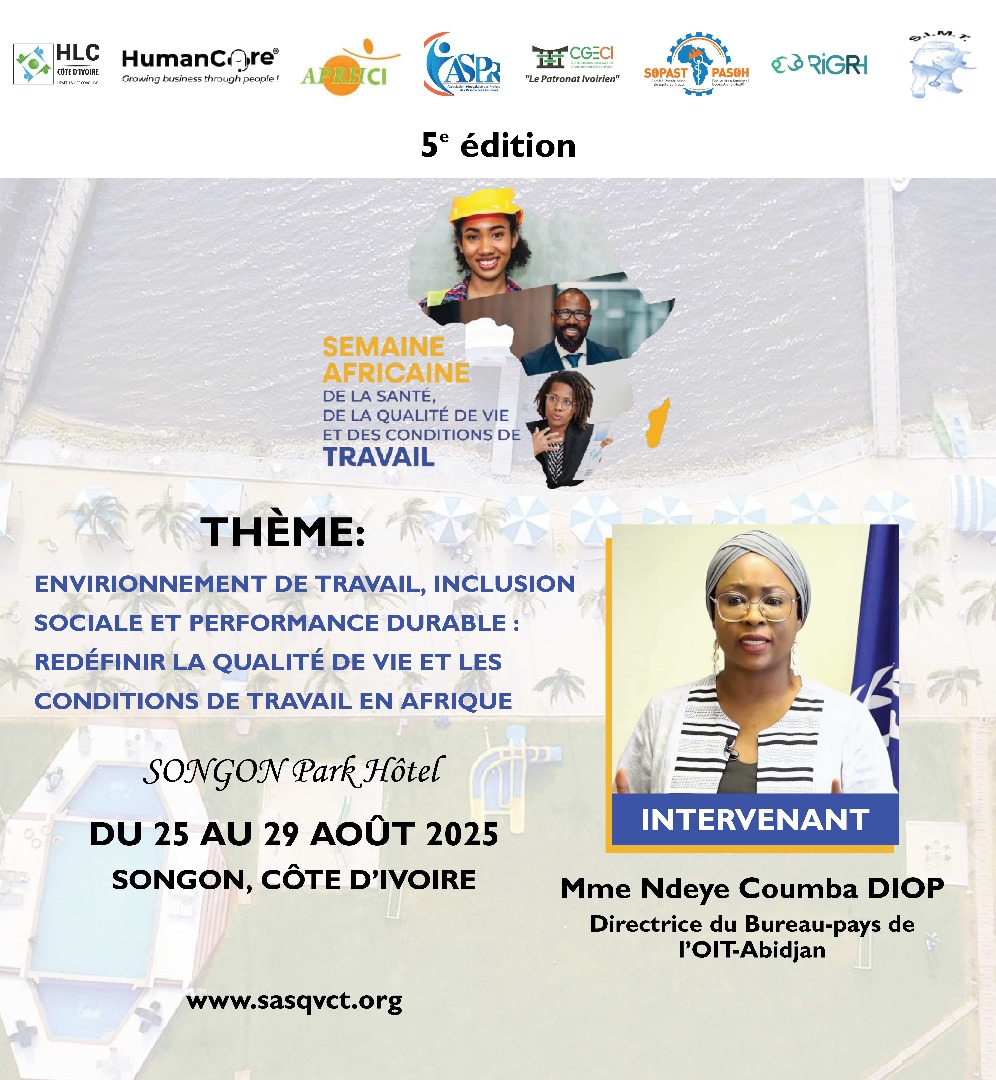 Le thème de cette édition, «ENVIRIONNEMENT DE TRAVAIL, INCLUSION SOCIALE ET PERFORMANCE DURABLE : REDÉFINIR LA QUALITÉ DE VIE ET LES CONDITIONS DE TRAVAIL EN AFRIQUE »,